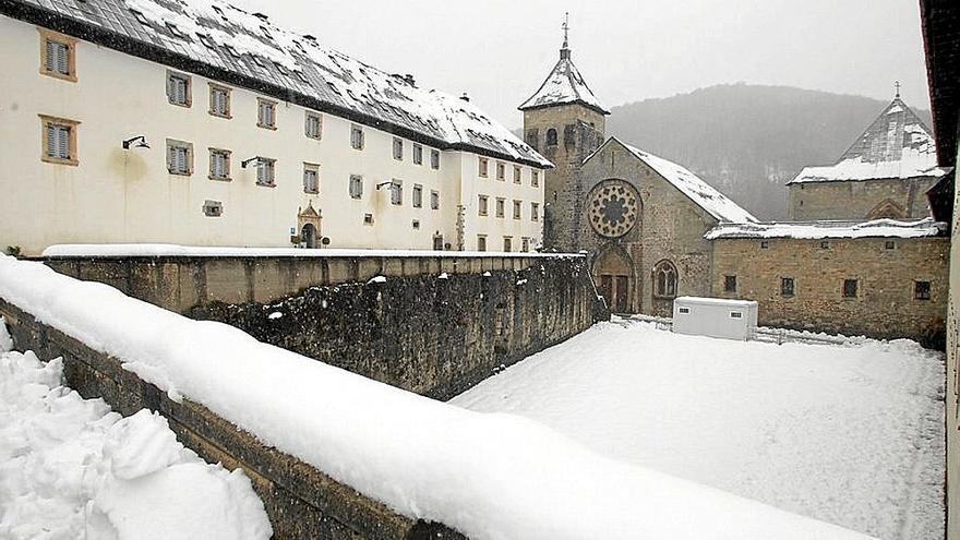 La Colegiata de Roncesvalles, después de una fuerte nevada.