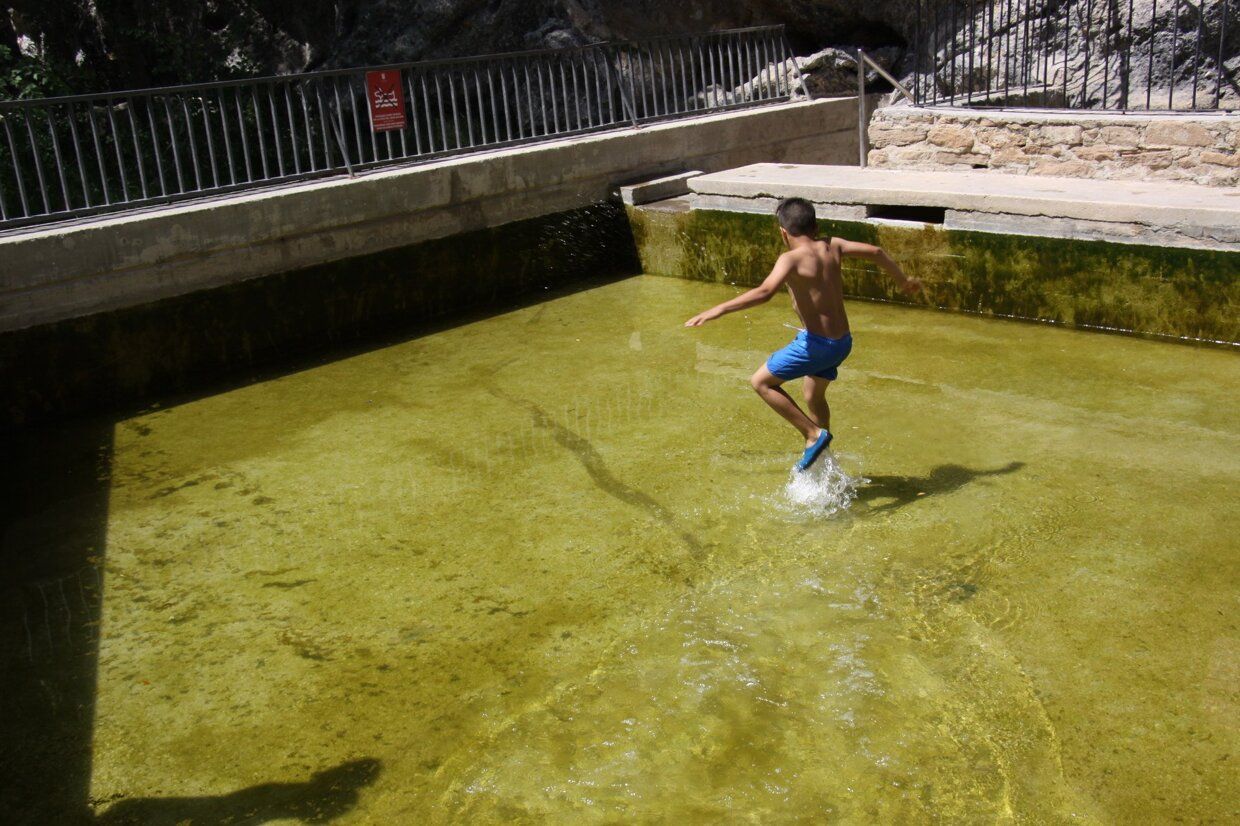 Esta poza que se llena con el agua procedente de un acuífero de yesos y carbonatos, con una concentración en sales elevada y carácter ligeramente termal. La tradición dice que sus aguas tienen efectos curativos, sobre todo, para las enfermedades de la piel.