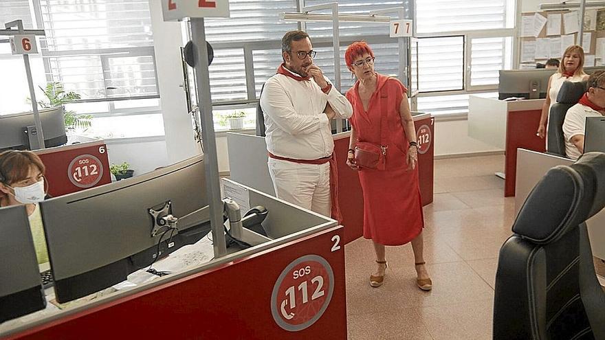 En su visita, el vicepresidente y la consejera han conocido el trabajo de operadores y operadoras que durante estos días movilizan los recursos de emergencias en San Fermín, a la par que los dirigen al resto de urgencias que puedan producirse en cualquier lugar de Navarra.
