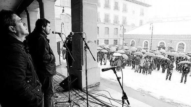 Más de un centenar de personas se concentraron en la plaza, ocupando todo el espacio protegido por los porches y provistos con gorros y paraguas al frente al improvisado escenario. El acordeón de Juanjo Tomasena y los bertsos de Mikel Alzuart y Bittor Balentzia intentaron caldear el ambiente e introducir el discurso del historiador Patxi Abasolo, quien recibió además de Orreaga un pequeño galardón por su labor como pregonero.