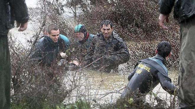 ciudad real. El niño de 9 años desaparecido en la tarde del martes en La Bienvenida, pedanía de Almodóvar del Campo (Ciudad Real), tras ser arrastrado por la crecida del río Alcudia el vehículo en el que viajaba con su familia, fue localizado sin vida poco antes de las once de la mañana de ayer. El menor fallecido era natural de Torredembarra. Mientras tanto diceiseis provincias continúan en alerta por viento, lluvia y nieve. En la imagen, efectivos de los servicios de emergencia sacan del río Alcudia, en el término municipal de La Bienvenida, el cuerpo sin vida del niño de 9 años desaparecido. Foto: efe