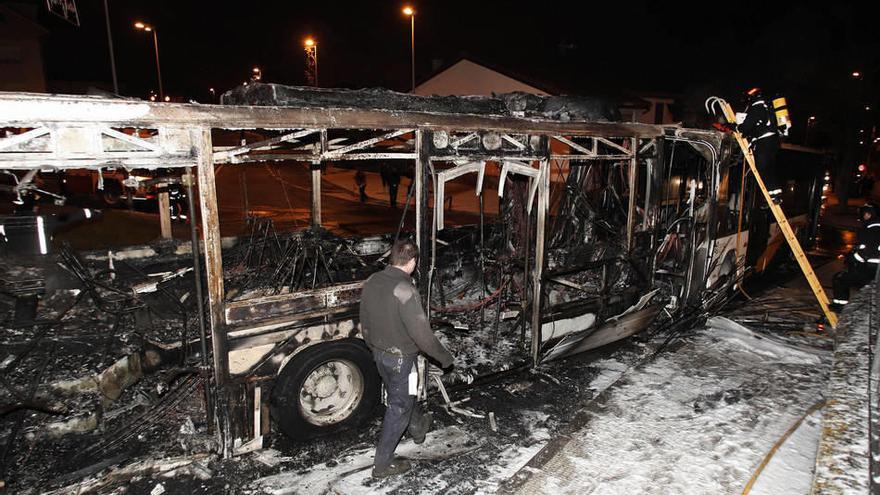 pamplona. Ocurrió en el pueblo viejo de Beriáin, en plena plaza Mayor, y ya cuando comenzaba a anochecer, por lo que el horizonte anacarado se vislumbraba desde bien a lo lejos. Tal resplandor se debía a las llamas que devoraron una villavesa articulada ayer por la tarde sobre las 18.30 horas, un fuego que presuntamente comenzó en el motor del vehículo, ubicado en la parte trasera debajo de los asientos, pero que se extendió rápidamente a lo largo de todo el autobús. En el momento del incidente, la villavesa, que realizaba la línea 16 que conecta Beriáin con Berriozar, circulaba sin pasajeros en su interior. Llegaba en ese instante a la última y primera parada de la línea, ya que el trayecto de este servicio comienza y finaliza en la plaza Mayor de Beriáin. El conductor se percató del humo que salía de la parte posterior del vehículo y dio la voz de alerta a través de la emisora central. Fue la Policía Local de Beriáin quien avisó del suceso a la sala de emergencias 112 de SOS Navarra.