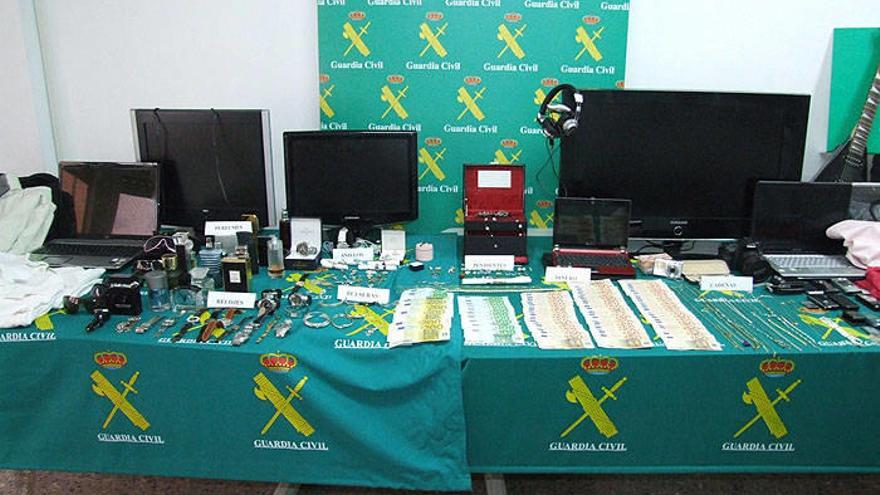 Según la Guardia Civil, en tres registros domiciliarios realizados en Tudela fueron intervenidos gran cantidad de joyas, así como televisores, ordenadores portátiles, cámaras fotográficas digitales, teléfonos móviles, perfumes y otros objetos procedentes de los robos, además de 6.200 euros en metálico y 70 gramos de speed.