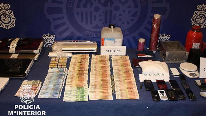 En la operación se practicaron tres registros domiciliarios, en los que se decomisaron decenas de útiles y productos químicos, y se encontraron útiles para el pesaje de droga, varios ordenadores portátiles, más de 9.000 euros, así como otros bienes procedentes de las ganancias del tráfico de drogas.