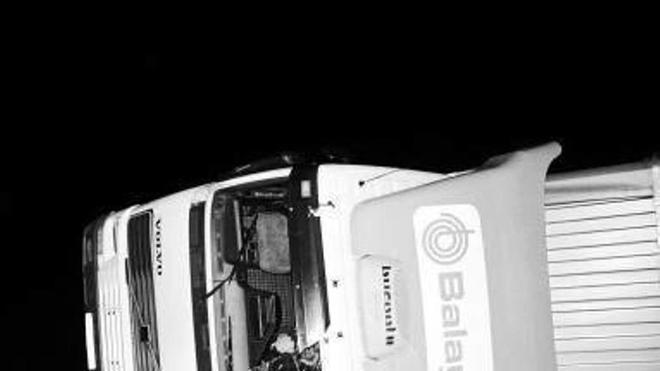 pamplona. Un camión sufrió ayer un accidente en el kilómetro 25 de la NA-132-A (Estella-Vitoria). El percance se produjo sobre las 19.43 horas cuando, por causas desconocidas, el camión se salió de la vía a la altura del cruce de Zúñiga cuando circulaba en dirección a Estella. Tras la salida, el conductor perdió el control del vehículo, que acabó volcando. El chófer, de 29 años, fue trasladado al Hospital de Navarra para evaluar sus lesiones tras sufrir un traumatismo craneoencefálico. Foto:m.g.v.