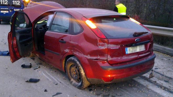 dos choques en Pamplona No fue el único accidente que requirió la presencia de efectivos de la Agencia Navarra de Emergencias, que también tuvieron que acudir a dos colisiones producidas a primera hora de la tarde en la capital navarra. En el primero, en el barrio de Iturrama, se vieron implicados un coche y una moto y se produjo a las 14.27 horas en la confluencia de las calle Fuente del Hierro y Serafín Olave. El motorista, un varón de 49 años, sufrió policontusiones y fue trasladado en ambulancia medicalizada del Servicio de Bomberos de la ANE al Complejo Hospitalario de Navarra. Su pronóstico era reservado. El otro accidente consistió en una colisión por alcance entre dos vehículos ocurrida a las 15.48 horas en la avenida Baja Navarra de Pamplona, a la altura del Seminario. Una mujer de 50 años resultó herida leve y fue trasladada en ambulancia al hospital.