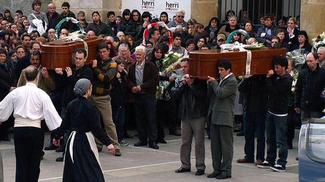 Tras la misa, la emoción regresó a la plaza. Un aurresku y el Agur Jaunak, interpretado por txistus y la banda municipal de la que formaba parte Garazi, despidieron a las jóvenes. Sus familiares y amigos más cercanos se trasladaron a continuación a la ermita del Cristo de Otadia, donde tuvo lugar un responso. Hoy serán incineradas. Descansen en paz.