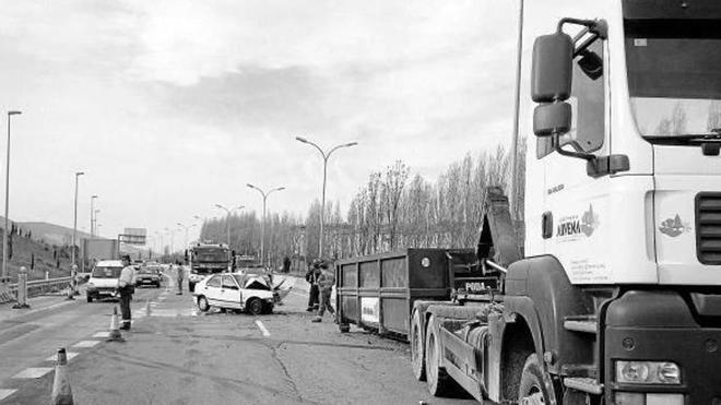 Pamplona. Un joven pamplonés, Urko G.V., de 25 años, resultó herido muy grave en un accidente acaecido ayer a las 9.05 horas en la Ronda de Pamplona en dirección Francia, a la altura del kilómetro 4,800, poco después de rebasar el desvío de Mendillorri, según informó el Gobierno de Navarra. El turismo que conducía el pamplonés chocó contra el remolque de un camión de una empresa de jardinería que en ese momento realizaba tareas de mantenimiento en la mediana. A última hora de ayer, el joven continuaba en la UCI en estado muy grave, según informaron sus familiares. Dos operarios de la empresa de jardinería de 26 y 42 años también tuvieron que ser traslados al hospital, aunque sus heridas no revestían gravedad.