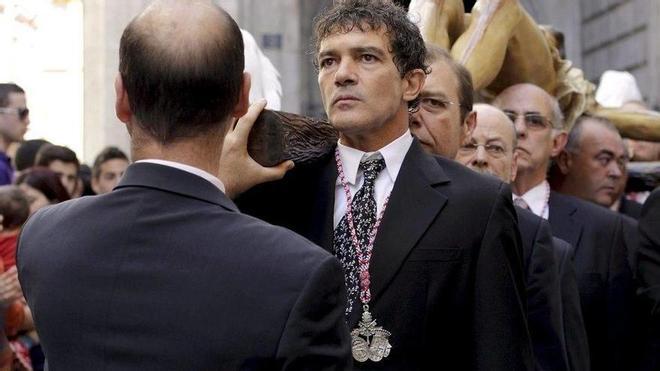 málaga. El actor Antonio Banderas, tras pronunciar el sábado el pregón de la Semana Santa malagueña, cumplió ayer con la tradición de que el pregonero traslade al Cristo de la Sangre desde la Parroquia de San Juan hasta la casa hermandad de la cofradía, aunque él participó en la salida desde la iglesia y los primeros momentos del recorrido. El domingo, dirigirá el trono de la Virgen de Lágrimas y Favores de su cofradía. Foto: efe