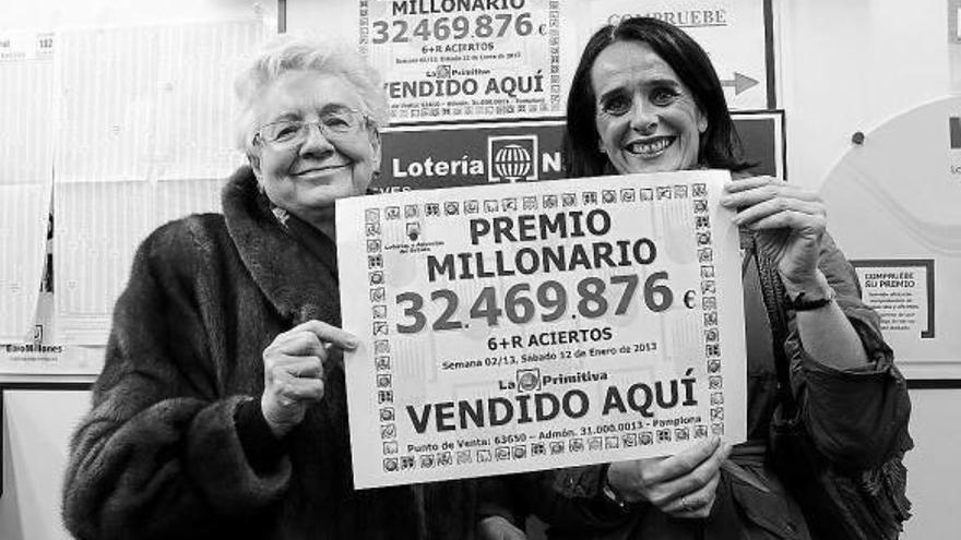 El mayor premio de la lotería Primitiva de la historia, un total de 32.469.876 euros, sellado en Pamplona, ha sufrido una merma de seis millones, debido a que es el primero de este juego al que se le aplica la nueva tasa impositiva aprobada por el Gobierno central para los premios de más de 2.500 euros.