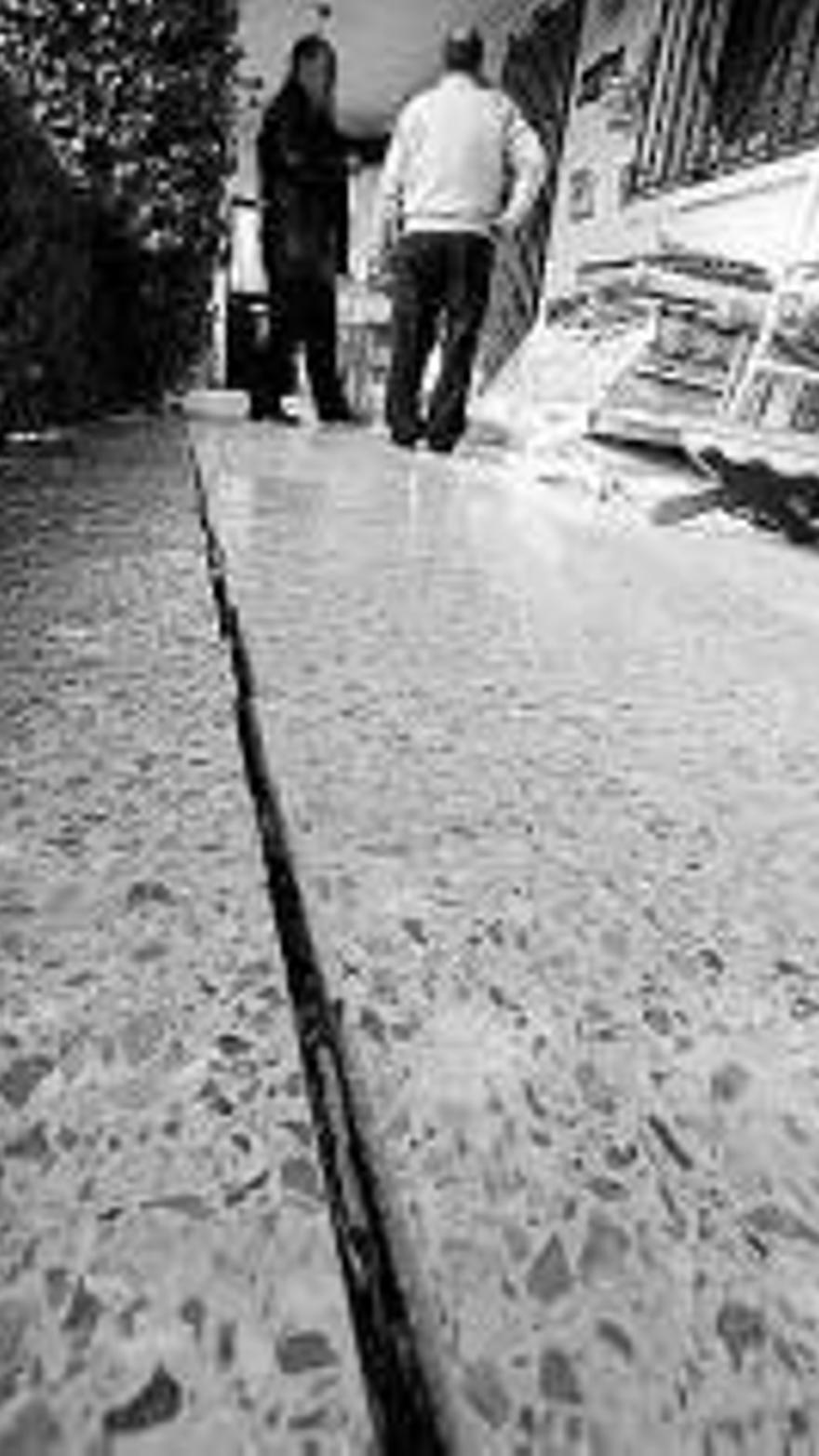 José Lozano, residente en San Sebastián y propietario de un bajo en Lasaitasuna, acudió ayer junto a su hijo para hacer balance de la semana y ver en qué nueva situación está su casa. La sorpresa, preocupante: el suelo inclinado en el mismo sentido que la ladera y muchas zonas se encuentran levantadas por la presión, paredes deformadas y desconchadas ("Esto no estaba así el fin de semana pasado", exclamaba mientras señalaba una de las paredes) y grietas mucho más grandes, a las que se suman otras nuevas.