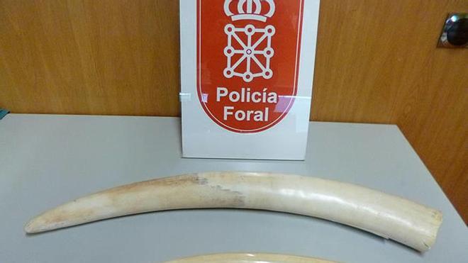 En el marco de las investigaciones que realiza la Brigada de Medio Ambiente de la Policía Foral, los agentes descubrieron una posible venta de dos piezas de marfil en Pamplona. Tras realizar una investigación, la Policía Foral logró identificar a su propietario y se incautó de los dos colmillos.