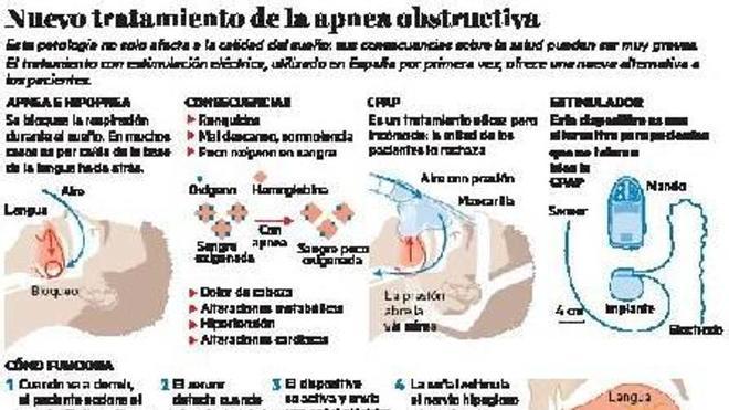 El procedimiento se empleó en dos personas que presentaron, por diferentes motivos, mala tolerancia al tratamiento convencional mediante presión continua positiva en la vía aérea (CPAP) para los casos de apnea severos, que consiste en bombear aire bajo presión dentro de la vía respiratoria durante el sueño, y, tras ponerlo en marcha el 15 de febrero, las dos refirieron que durante la noche “no habían sufrido ningún episodio de apnea” y notaron “una mejora inmediata de la calidad del sueño”, así como del “estado general al día siguiente”.