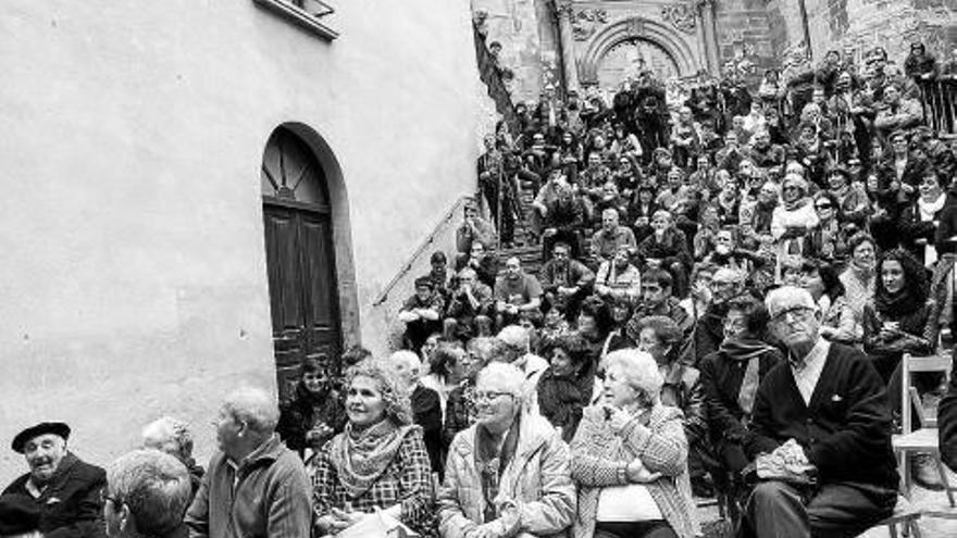 HISTORIAS ROBADAS. En la plaza del Portal, pequeña para acoger a todos los presentes, Andrea Aiape dio paso a la voz de la denuncia y a los emocionantes recuerdos, precedida por el Alto de Loiti, de Fermín Valencia que suena en Cáseda, por su proximidad y vínculo con la historia, con mayor sensibilidad.