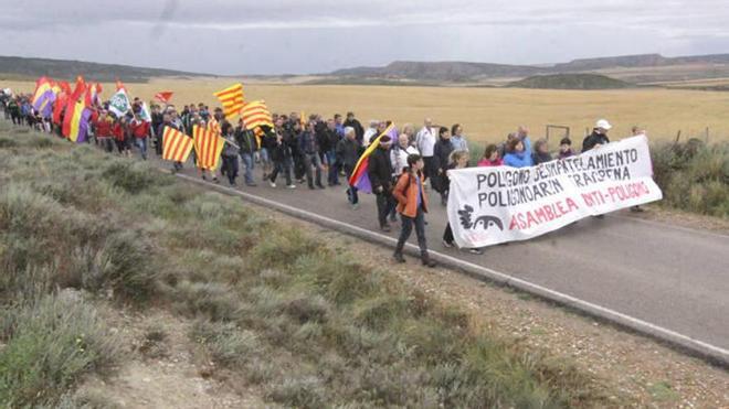 tudela - “El peligro de la existencia del Polígono de Tiro en Bardenas como objetivo en caso de confrontación bélica es cada vez mayor”. Es una realidad que, como alertaron ayer en el manifiesto leído tras la Marcha Antipolígono, “tiene que ser afrontado por la sociedad navarra y aragonesa”, a pesar de que tras tres décadas de movilizaciones, sus organizadores “ no quieren crear falsas expectativas”. Sin embargo, “la constancia” y la “pelea pacífica sin descanso” siguió guiando ayer a las alrededor de 300 personas que volvieron a cubrir los cinco kilómetros que separan el término de Aguilares de la base militar que, instalada hace 66 años y cada vez más operativa, se erige en pleno Parque Natural en virtud de un jugoso convenio de arrendamiento con los congozantes del territorio. “En la mañana del pasado 23 de mayo volvieron a oírse varios estruendos en Tudela, y en los pueblos próximos a las Bardenas Reales temblaban los cristales; el nuevo ciclo de bombardeos con fuego real se prolongó el 24 y 25. El 13 de junio vuelven a repetir la operación. Y así, una y otra vez”, denunciaron desde la Asamblea Antipolígono y desde el resto de convocantes de la marcha (Plataforma de Ejea y Pueblos, y EKA).