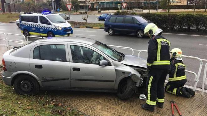 PAMPLONA. Bomberos y Policía Municipal de Pamplona han tenido que asistir en la tarde de este viernes en un accidente de tráfico sin heridos en la rotonda de Íñigo Arista en la Avenida de Navarra.