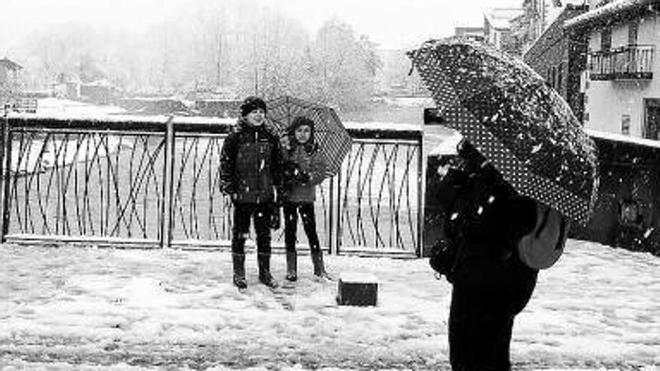 Una copiosa nevada de las que, como se suele decir, no recordaban “ni los más viejos del lugar” descargó desde primera hora de la mañana y durante todo el día de ayer en Baztan, cubriendo todo el valle de una gruesa capa de nieve aunque por fortuna sin que se registraran accidentes ni daños personales. A la hora de cerrar esta información, el puerto de Belate se encontraba cerrado al tráfico, igual que otros pasos de la red secundaria de carreteras, la N-121-B estaba cortada por la caída de un árbol a la calzada, había reventado un tubo de carga de la central hidroeléctrica del barrio de Baigorri en Irurita y otros barrios rurales carecían de luz y teléfono y se encontraban incomunicados además de que seguía nevando con intensidad.