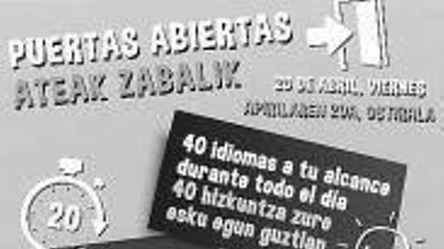 En esa programación, destaca el día 20, en dos sesiones, una de mañana (de 9.00 a 11.00 horas) y otra de tarde (de 16.30 a 19.30 horas), la posibilidad de conocer de forma intensiva las claves básicas de decenas de idiomas. En concreto, el objetivo es llegar a ofrecer sesiones de hasta 40 lenguas diferentes. Así, en las aulas de la escuela habrá la posibilidad de que cada persona conozca diez idiomas diferentes en sesiones de 20 minutos cada uno.