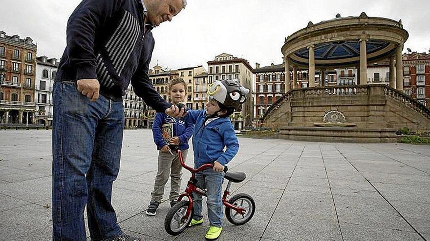 Como fue el caso de Andoni Martínez, que llevó a primera hora de la mañana a sus hijos Anne y Alonso -con un característico casco de una vaca- a una Plaza del Castillo menos vacía que otros días, pero sin llegar en ningún momento a poner en peligro la distancia de seguridad.