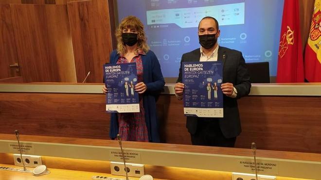 La consejera de Relaciones Ciudadanas, Ana Ollo, ha presentado la gira “Hablemos de Europa-Mintza Gaitezen Europaz”, organizada por la Dirección General de Acción Exterior, que recorrerá en un autobús decorado con motivos de la ventana hacia Europa, EUROPE DIRECT Navarra/Nafarroa, once localidades de Navarra. El objetivo es acercar Europa a la ciudadanía y promover el debate sobre el continente, en el marco de la Conferencia sobre el Futuro de Europa.