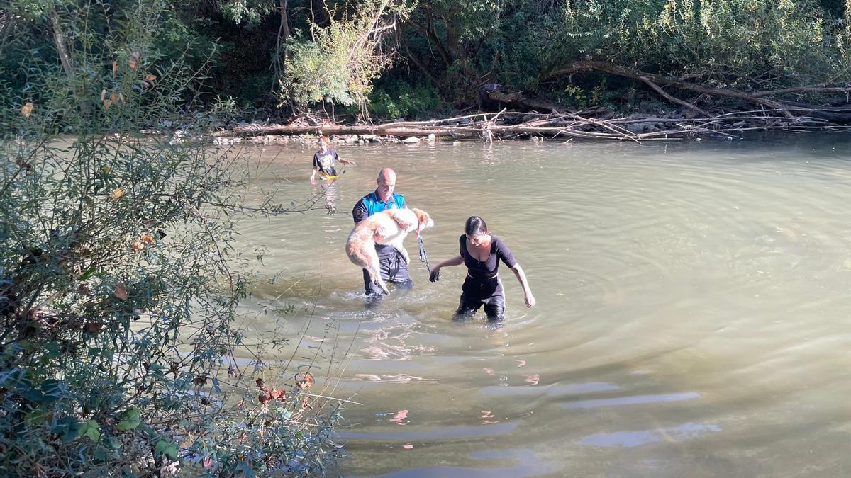 Con la ayuda de dos ciudadanas, un agente de la Policía Municipal ha conseguido sacar al perro del río y gracias al chip se ha podido localizar a su dueña, que se ha hecho cargo del animal.