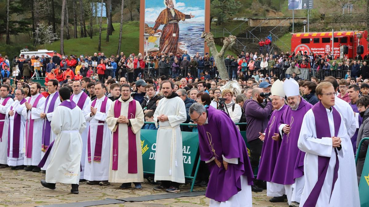 5.450 personas han acudido este domingo a la explanada ante el castillo de Javier, que ha acogido la multitudinaria misa con la que se ha cerrado la primera de las dos Javieradas, las peregrinaciones que anualmente se realizan para honrar en su localidad natal al patrón de Navarra, San Francisco Javier, y lo ha hecho con una atenta mirada sobre el trato a las personas migrantes.
