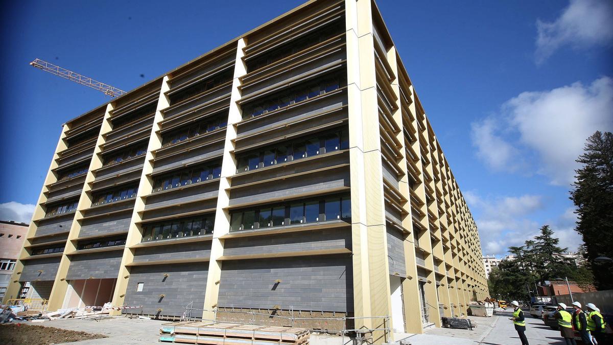 Tras una breve reunión, la Comisión parlamentaria ha realizado una visita por el nuevo edificio que, ubicado y conectado con el antiguo edificio de la facultad, alberga una superficie de 16.483 metros cuadrados distribuidos en una planta baja, cuatro alturas y un sótano destinado a instalaciones técnicas y plazas de aparcamiento.