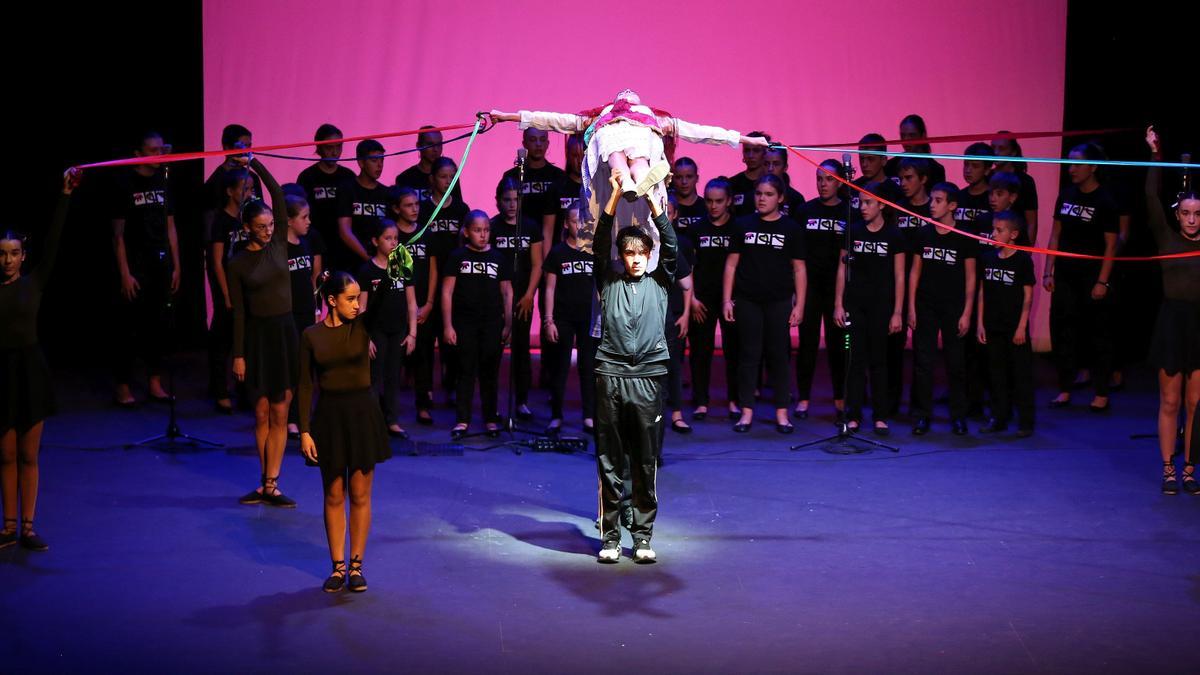 “Komunitatea ez da bakarrik egiten”, gogoratu du oholtzatik Elena Uriz aktoreak, herria “eraikitzen ikusi” duen emakumearen roletik. “Ahalegin partekatuak beti fruitu onak ematen ditu eta indartsuak egiten gaitu. Hazia gauza txikia da eta lurrik gabe ez da ezer. Urik gabeko lurra lehortu egiten da eta hazia galtzen da. Erein dezagun, jarrai dezagun ereiten”, nabarmendu du pertsonaiak, ikastolako ikasle talde batek, banaka, ereindako landarea argi txikiz “ureztatzen” duten bitartean. “Auzolana aspaldidanik Euskal Herriko bizimoduan errotuta egon den ohitura da”, borobildu du aktoreak. “Kapazak izan gaitezen ohitura horrekin jarraitzeko”.