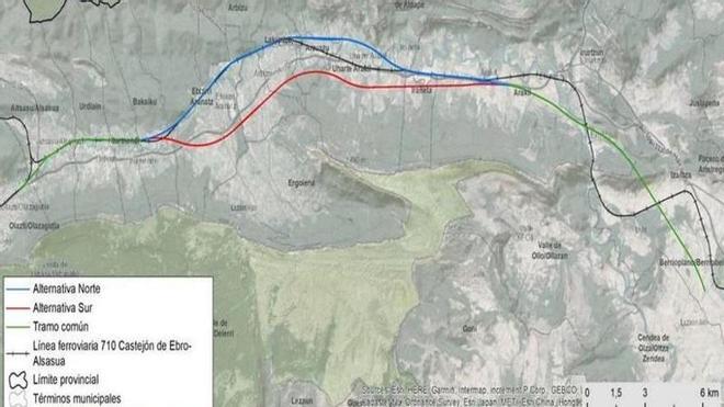 Ambas opciones comparten un primer tramo común de unos 13 kilómetros, que da continuidad al trazado ya recogido en el Estudio Informativo de la Red Ferroviaria de la comarca de Pamplona, actualmente en fase de evaluación ambiental. A partir de ahí, se abre un tramo de unos 20 kilómetros en el que los recorridos divergen: la Alternativa Norte se adosa mayoritariamente a la línea ferroviaria existente Alsasua-Castejón de Ebro, mientras que la Alternativa Sur plantea un nuevo corredor independiente, próximo a la autovía A-10.