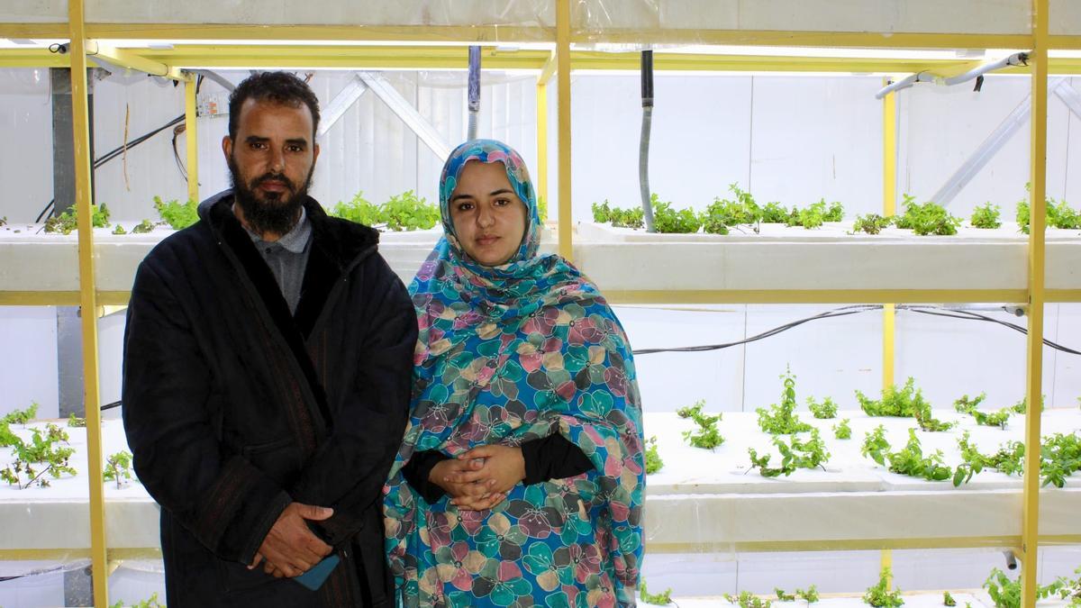 Sidahmed fue el hermano que lideró Badad Farm cuando en 2012 empezó a buscar en internet soluciones para mejorar la alimentación de su familia y encontró formaciones online sobre sistemas de cultivo hidropónico. “Empezamos con media jaima y en 2019 conseguimos unas ayudas para jóvenes de una ONG americana e iniciamos el proyecto cultivando lechugas, tomates, pepinos, melones y sandías”, recuerda Galia. Pero no fue tarea fácil porque tres años después, en 2022, una tormenta destruyó los invernaderos: “Pensamos que era el fin del proyecto pero otra ONG nos ayudó y volvimos a sacarlo adelante”.