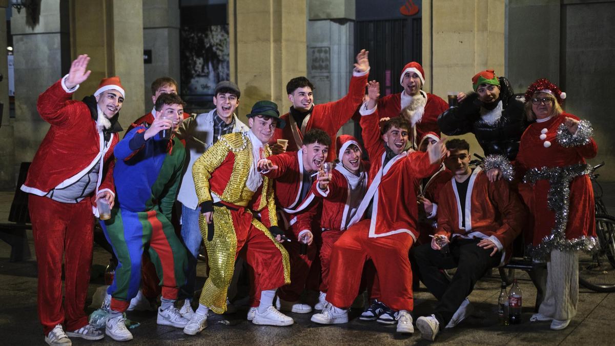 A pocos metros, otro grupo optaba por la sencillez y la calidez. Disfrazados de abuelos, improvisaron con boinas y ropa ancha que encontraron en las tiendas con apenas dos días de antelación. “Somos un desastre de grupo”, explicaba Pablo Gota, mientras su risa se mezclaba con la de sus amigos. La rapidez no restaba comodidad, ya que su vestimenta permitía llevar muchas capas térmicas para luchar contra la madrugada del primer día del año.
