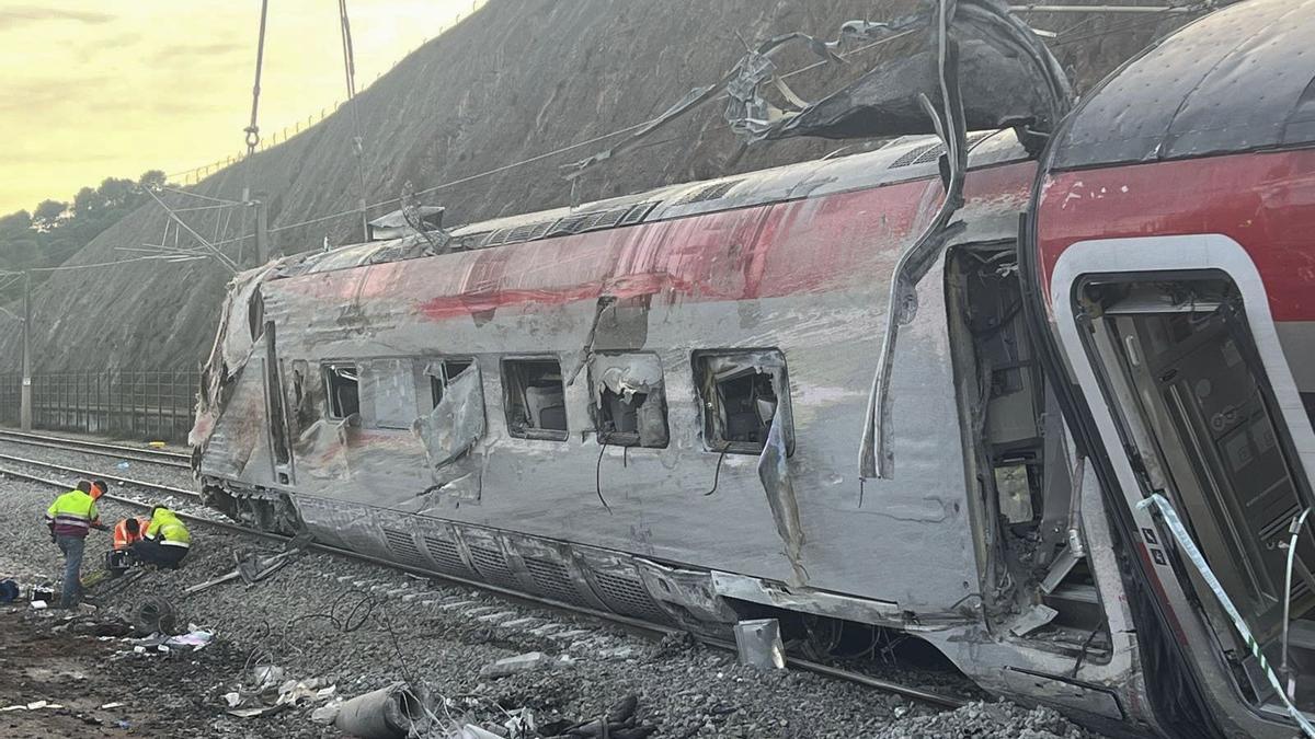 El Equipo Central de Inspecciones Oculares de Criminalística de la Guardia Civil, cuerpo encargado de recopilar las pruebas en la zona cero del siniestro, analizaba ayer a fondo ese coche 6 para determinar qué originó esa fatal anomalía en la interacción entre el vehículo y la infraestructura, incluyendo las roturas de los raíles y también posibles desperfectos en las rodaduras o sistemas de anclajes de los trenes. Previamente, los especialistas habían concluido a media mañana la inspección ocular de los vagones 7 y 8 del Iryo a fin de que pudieran iniciarse las tareas para su retirada.