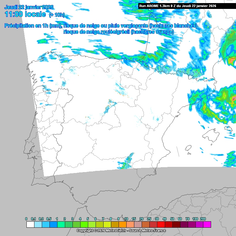 En el mapa, las zonas azules rayadas equivalen a nieve: