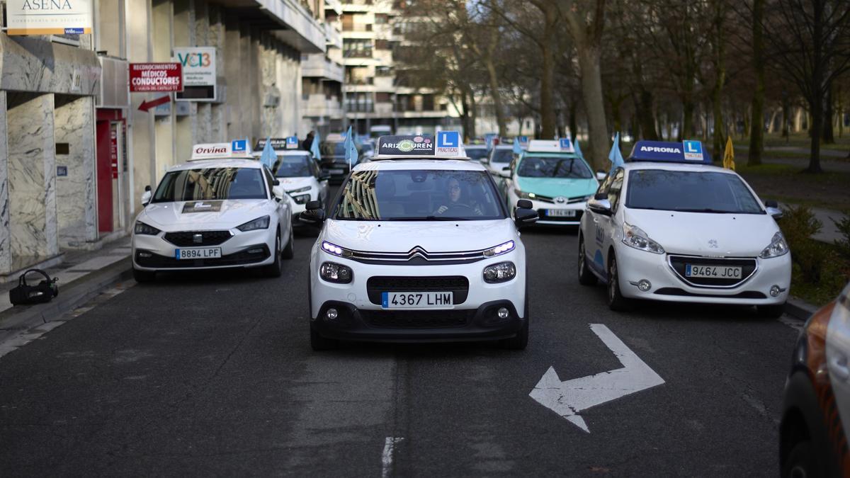 Las autoescuelas navarras se han vuelto a manifestar este lunes, como ya vienen haciendo desde finales del año pasado, y aseguran sentirse "abandonadas", sin respuestas y sin un plan claro para garantizar un servicio público esencial.