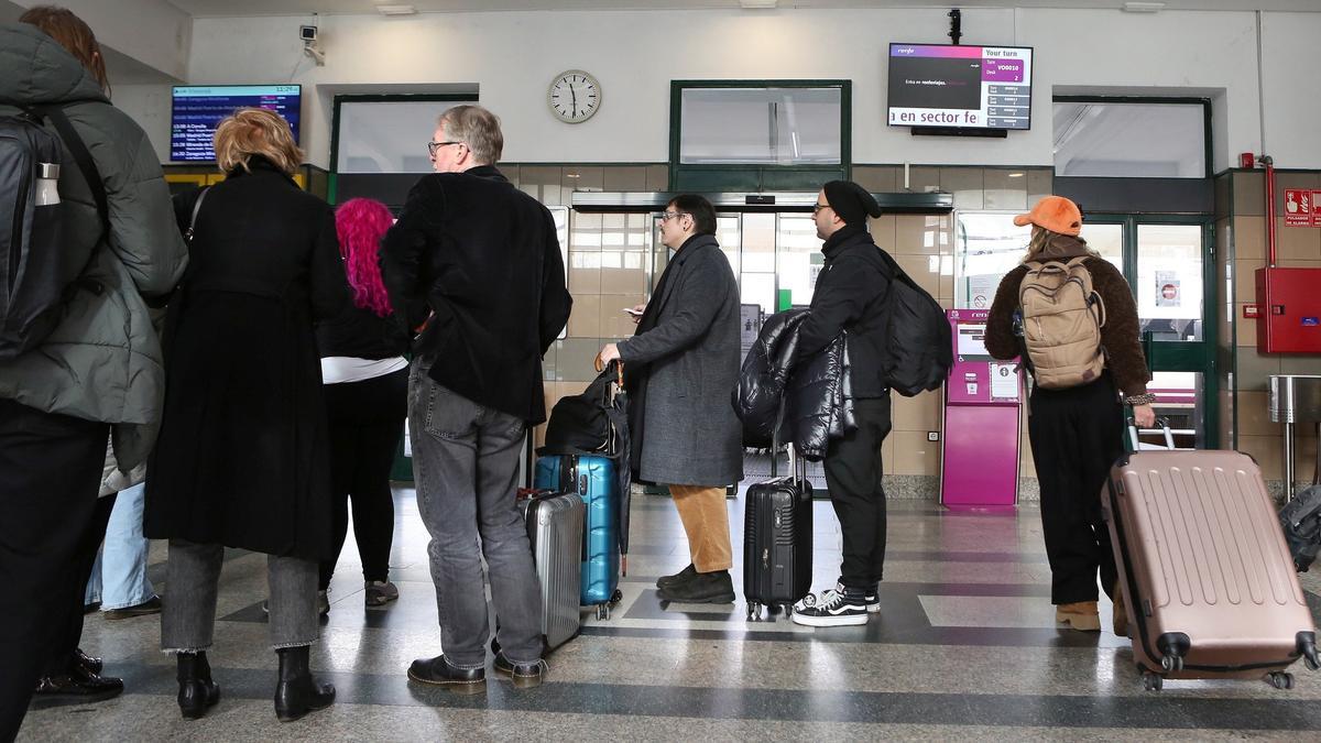 A los pasajeros se les ha informado de la cancelación a las 11.30 horas, cuando muchos de ellos ya se encontraban en la estación. “Os informamos de que el tren no sale”, anunciaba en público una de las trabajadoras de Renfe. “Nosotros nos acabamos de enterar ahora también de que el maquinista no se presenta. Al ser día de huelga, no se pone autobús ni otra alternativa. Lo que se puede es pedir la devolución del importe del billete en la taquilla”.