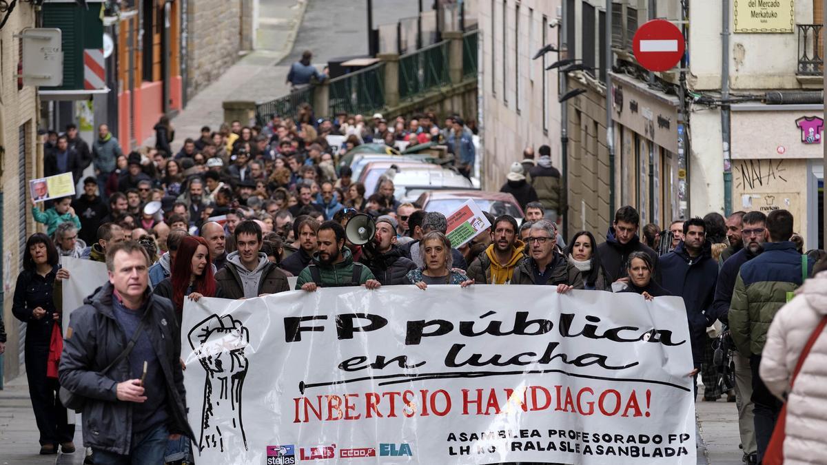 La marcha ha comenzado pasadas las 12:20 horas frente a la sede del Departamento de Educación. Bajo el lema 'FP en lucha. Inbertsio handiagoa' (Mayor inversión), los asistentes han exigido soluciones urgentes ante lo que consideran una "inacción" política que afecta gravemente a la calidad de la enseñanza.