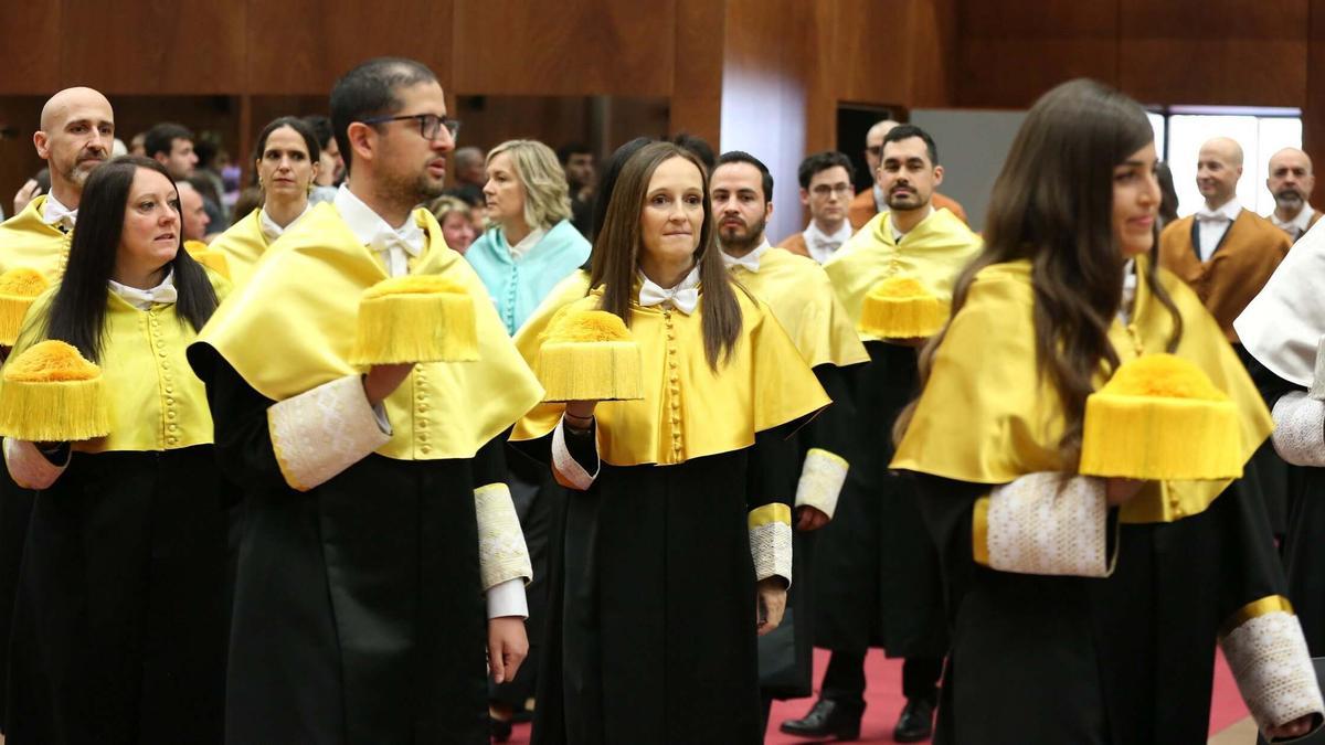 La Universidad Pública de Navarra (UPNA) ha celebrado este mediodía el acto de investidura de 86 de los nuevos doctores y doctoras que han defendido sus tesis en los últimos dos años. La ceremonia, que se celebró en el Aula Fernando Remacha, estuvo presidida por el rector de la Universidad, Ramón Gonzalo y ejerció como madrina Teresa Riesgo Alcaide, secretaria general de Innovación del Ministerio de Ciencia, Innovación y Universidades.