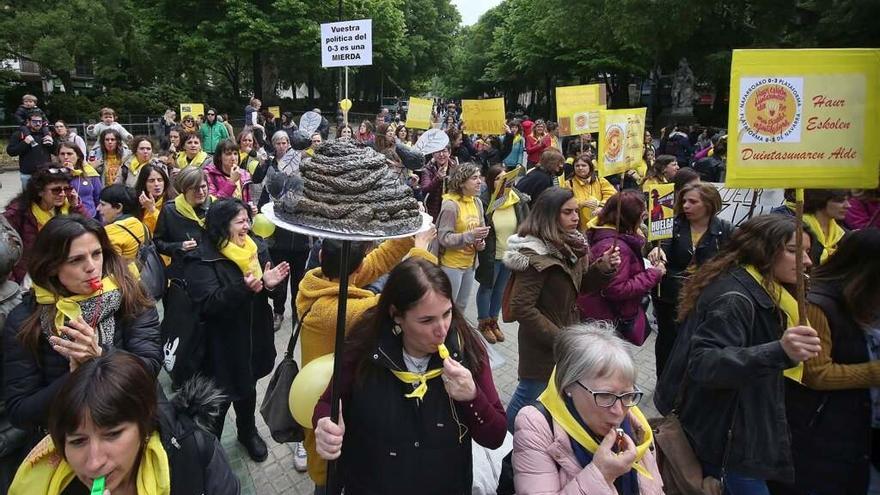 El colectivo de educadoras del ciclo 0-3 de Navarra, junto con la Plataforma 0-3, ha anunciado nuevas movilizaciones para reclamar una bajada de ratios en las aulas y el fin de la masificación en las escuelas infantiles. Todos los jueves informarán sobre la realidad de las escuelas infantiles, sus demandas y las distintas acciones dentro de la campaña y han convocado una jornada de huelga para el próximo 7 de mayo.