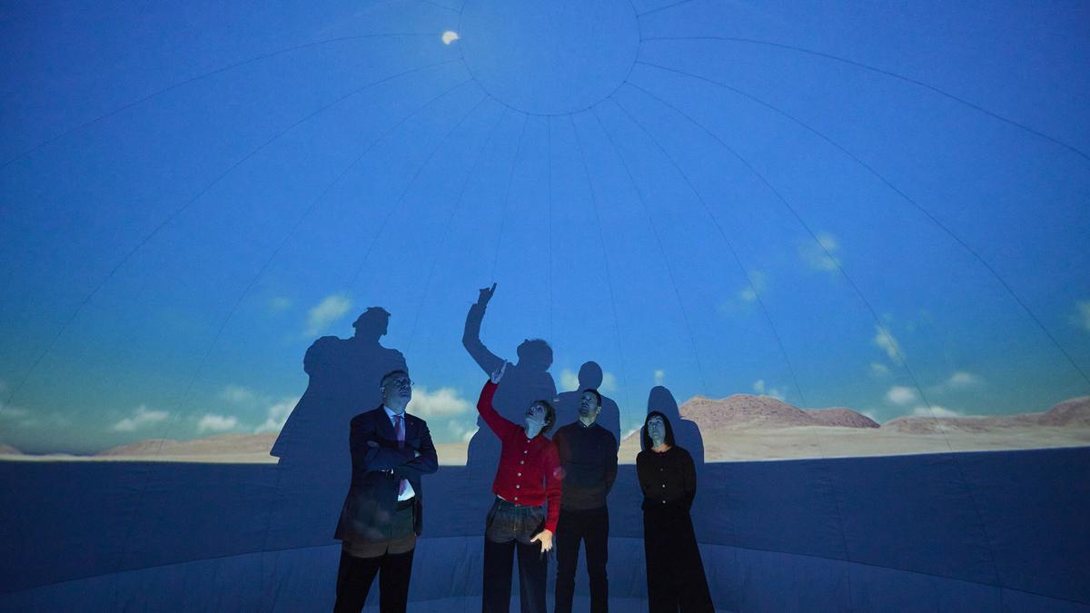 El recorrido continúa en una cúpula gigante de casi cuatro metros de altura, donde se proyecta un audiovisual diseñado por el equipo científico del Planetario de Pamplona. En él se explica el papel de los tres protagonistas del eclipse —el sol, la tierra y la luna— y se ofrecen pautas para observarlo de forma segura. La experiencia se completa con dos telescopios solares de gran tamaño, que permiten contemplar la actividad del Sol con gran detalle, y con diversos talleres didácticos en los que los estudiantes montan su propio sistema o participan en juegos y dinámicas educativas sobre el eclipse. De esta forma, lo que se pretende por medio de esta experiencia es que, aun sin Planetario, sea "posible seguir divulgando la astronomía, preparar a la comunidad escolar y docente y seguir jugando, que de eso va la ciencia", ha expuesto.