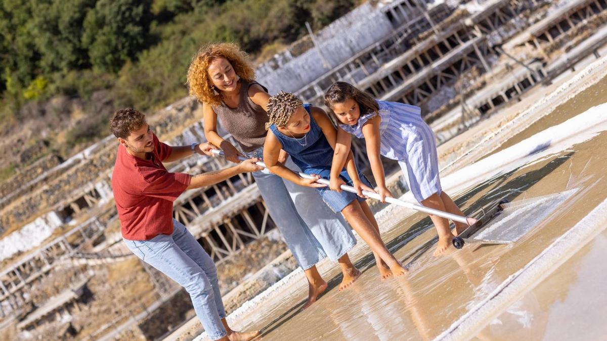Un guía especializado te enseña paso a paso el proceso artesanal para obtener el "oro blanco": llenar las eras de salmuera, usar el trabuquete para su distribución, remover el agua salada, recoger los cristales en cestos y almacenarlos en los antiguos almacenes.