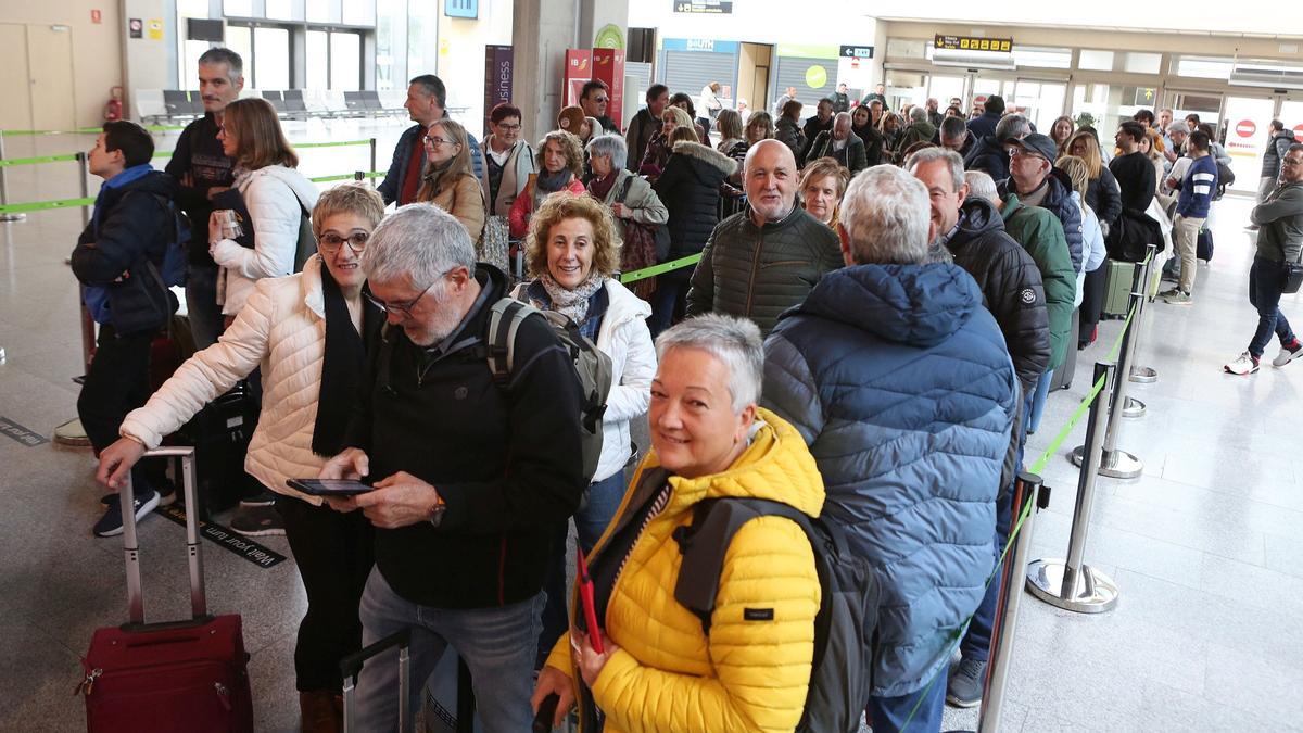 Los navarros que guardaban turno en la fila de la facturación parecían haberse puesto de acuerdo para organizar su itinerario de viaje en Nápoles. María Jesús Goñi esperaba con la tarjeta de embarque en la mano a que sus acompañantes de viaje –amigos y familiares– terminasen de facturar para ir directos al control de seguridad. “Nos vamos ocho personas a Nápoles, a ver la ciudad, a visitar el Vesubio y el parque arqueológico de Pompeya, y a conocer la Costa Amalfitana”, contaba.