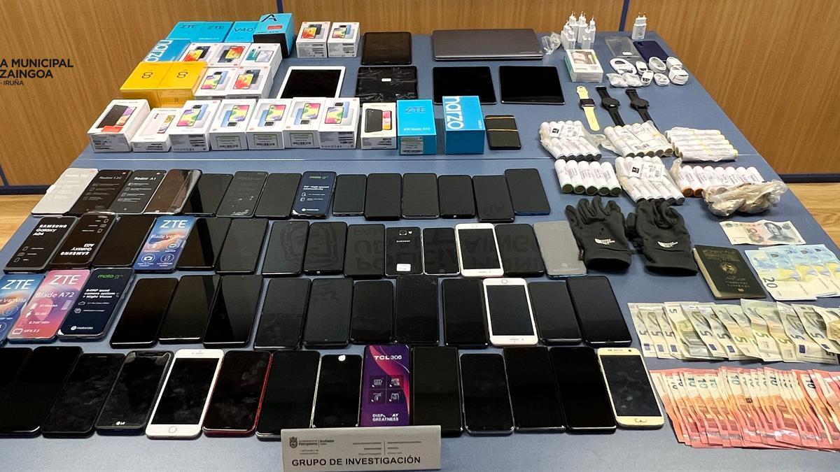 Después de más de 24 horas de seguimiento, se consigue localizar el domicilio de esta persona procediendo a su detención y tras conseguir una orden judicial para su registro se procede a entrar en éste, localizando en su interior 80 teléfonos móviles, 5 tablets, un ordenador, 3 smartwatch, varios cargadores y 1.354 euros.