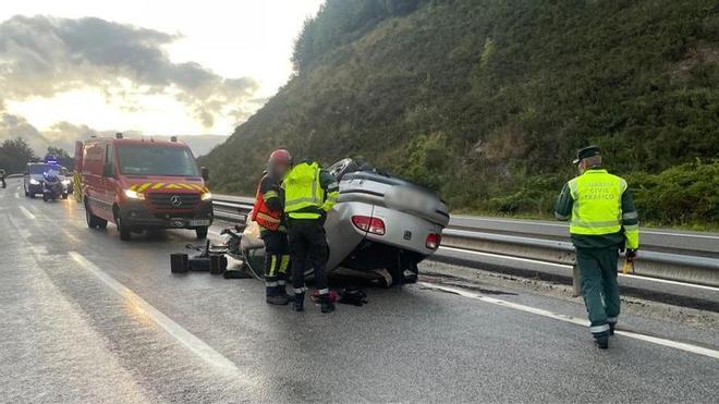 El siniestro vial se ha producido cuando el vehículo, que circulaba por la A-15 en sentido Pamplona, se ha salido de la vía, ha chocado con la bionda y ha volcado.