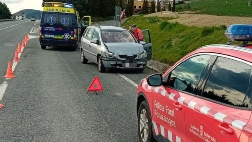 SOS Navarra ha recibido el aviso del siniestro a las 16.36 horas y hasta el lugar se han movilizado los bomberos del parque de Cordovilla, una ambulancia de Soporte Vital Básico y la Policía Foral.