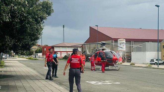 El centro de gestión de emergencias de SOS Navarra 112 movilizó al lugar al equipo médico de la zona, una ambulancia SVB y el helicóptero medicalizado, que trasladó al trabajador al Hospital Universitario de Navarra (HUN). También acudieron agentes de la Policía Local de Tafalla y de la Policía Foral.