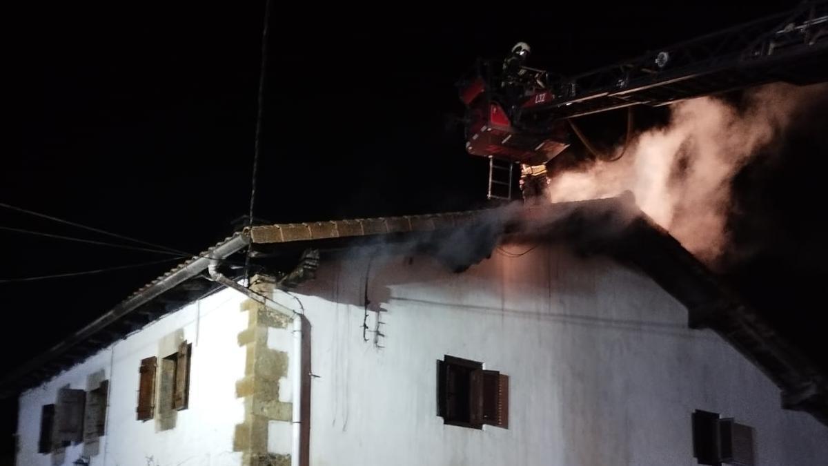 Bomberos de Navarra del parque de Trinitarios han atendido un incendio la pasada madrugada que afectaba al tejado de una casa en la localidad de Zandio, en el municipio de Olaibar, a 13 kilómetros de Pamplona.