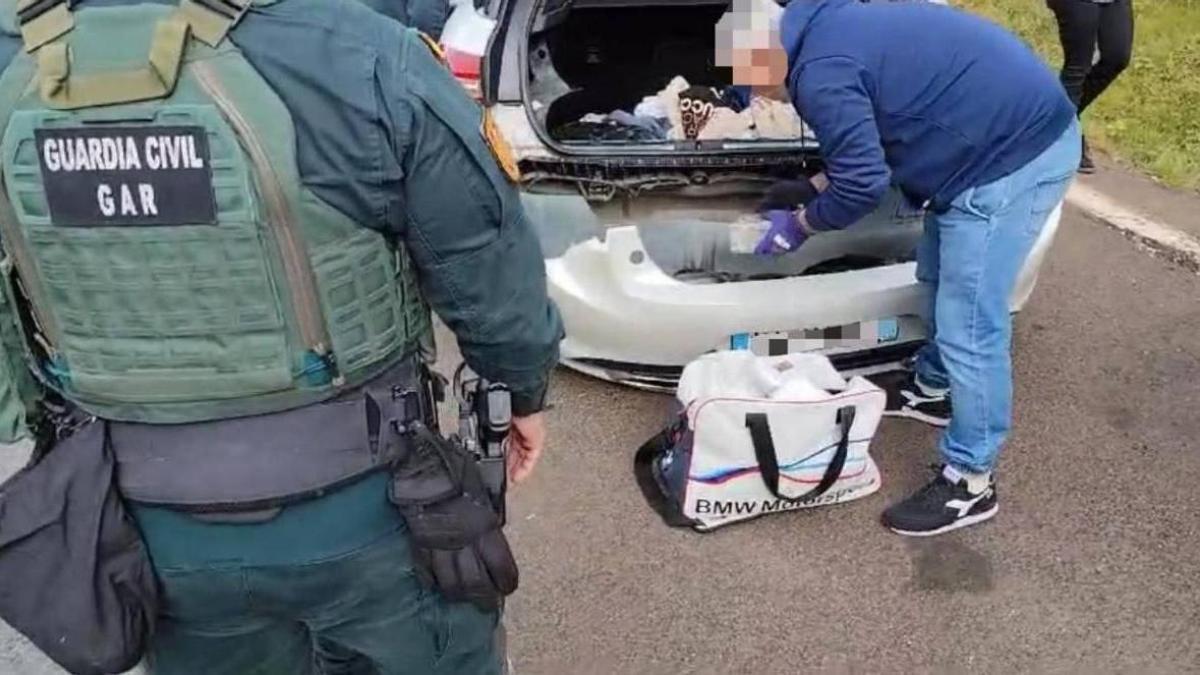 Los agentes decidieron entonces realizar una inspección del vehículo y observaron que la defensa trasera parecía estar modificada. En ella, hallaron un doble fondo o caleta (escondites utilizados para transportar droga) donde el detenido transportaba 28 paquetes de hachís, los cuales arrojaron un peso total de 17,670 kilos.