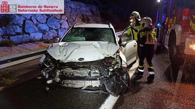 El conductor herido en la Autovía del Pirineo presentaba policontusiones de carácter leve y fue trasladado al Hospital Universitario de Navarra para su valoración y atención médica.