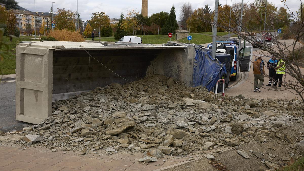 El conductor de un camión ha resultado herido leve en el vuelco de dicho vehículo en una rotonda entre Mendillorri y Lezkairu este viernes por la mañana, ha informado la Policía Municipal de Pamplona. El varón ha sido trasladado al Hospital Universitario de Navarra con lesiones de carácter leve.