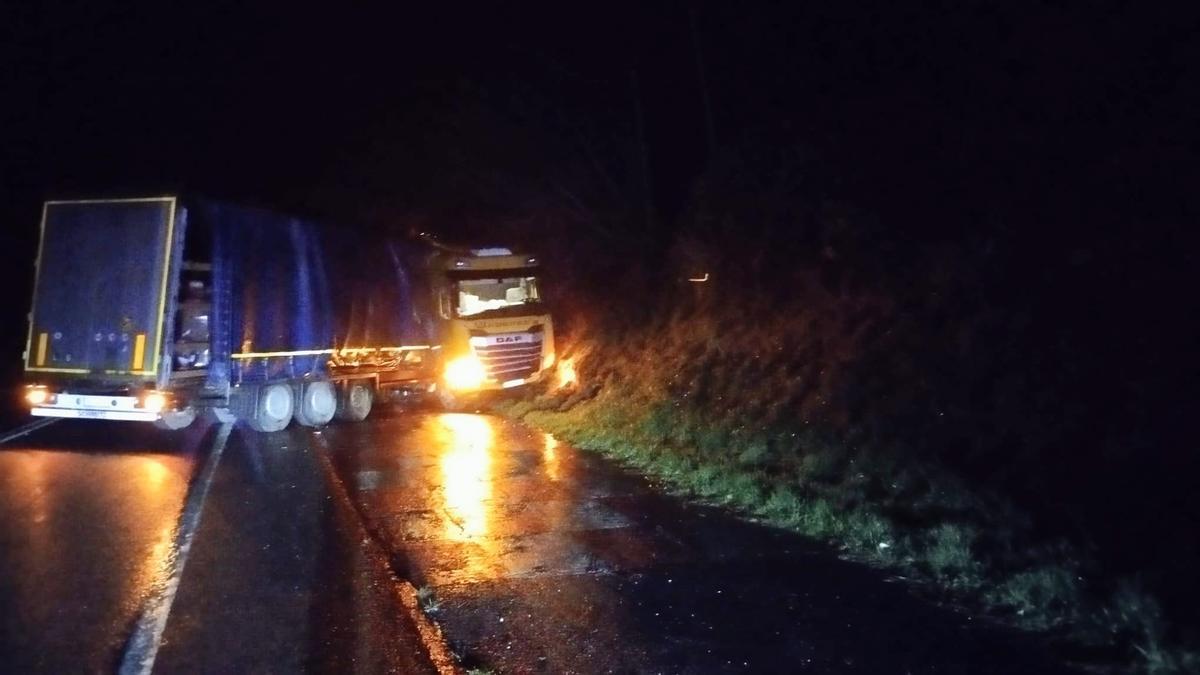 Un camión articulado se vio implicado en un siniestro vial registrado en la tarde de ayer, 22 de diciembre, en la carretera N-121-A, a la altura del punto kilométrico 38,2, dentro del término municipal de Baztan. El accidente tuvo lugar en torno a las 20.00 horas y consistió en una salida de vía por el margen izquierdo de la calzada, con daños materiales en la bionda de seguridad.